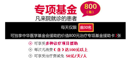 援助每人价值800元治疗现金抵用基金(卡): 凡来院就诊的患者,可独享中华医学基金会援助的价值800元治疗专项基金援助卡一张(每天仅限前30名),当日即可享受由郑州新世纪女子医院提供的意大利温妮纳米蓝氧生物技术、BYK腔道生物介入系统、CRS消融系统、夏洛特生物离子波技术、可尔WM-Ⅲ妇科多功能综合治疗仪等诊疗项目援助,凡消费(含)达100元以上,可享受治疗费减免50元/天/人。