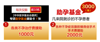 凡来院就诊的不孕患者,可独享中华医学基金会提供的价值3000元专项助孕基金援助卡一张(每天仅限前10名)。