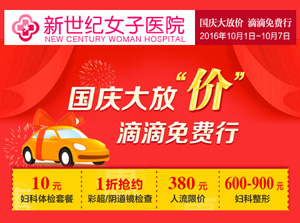 国庆大放“价” 滴滴免费行 2016-09-30 16:32:29 160人觉得有用 温馨提示:文字太多?直接咨询在线医生免费咨询 十一黄金周,郑州新世纪女子医院浓情推出“国庆大放‘价’ 滴滴免费行”关爱女性健康活动:价值238元的妇科体检套餐仅需10元,彩超、阴道镜检查1折抢约,阴道护理限价50元/次,可尔依保宫无痛人流限价380元,妇科整形限价600-900元,石女再造手术费半价,宫外孕等妇科微创手术费半价,预约尊享滴滴专车免费接诊,为河南女性健康保驾护航。 主办单位:郑州新世纪女子医院 活动时间:2016年10月1日—10月7日 活动内容: 已有737患者看完本文章后 参与咨询 上一篇:健康过中秋:中秋团圆惠 滴滴免费行 下一篇:十月钜献 惠不可挡:2000元红包大派送 3重好礼惠民生 相关热点问题 +更多 夏至爱无忧 健康欢乐颂详情>> 品质医疗 年中钜惠详情>> 盛惠端午 爱心助医公益行详情>> 郑州好的妇科医院--郑州新世纪女子医院详情>> 浓情五月 健康有礼详情>> 评论评价 立刻咨询