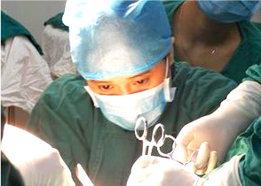 无影灯照射下施术