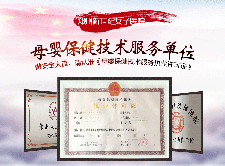 郑州新世纪女子医院拥有国家卫生部门颁发的《母婴保健技术服务执业许可证》,有实力开展各类计划生育手术。【详情】 -